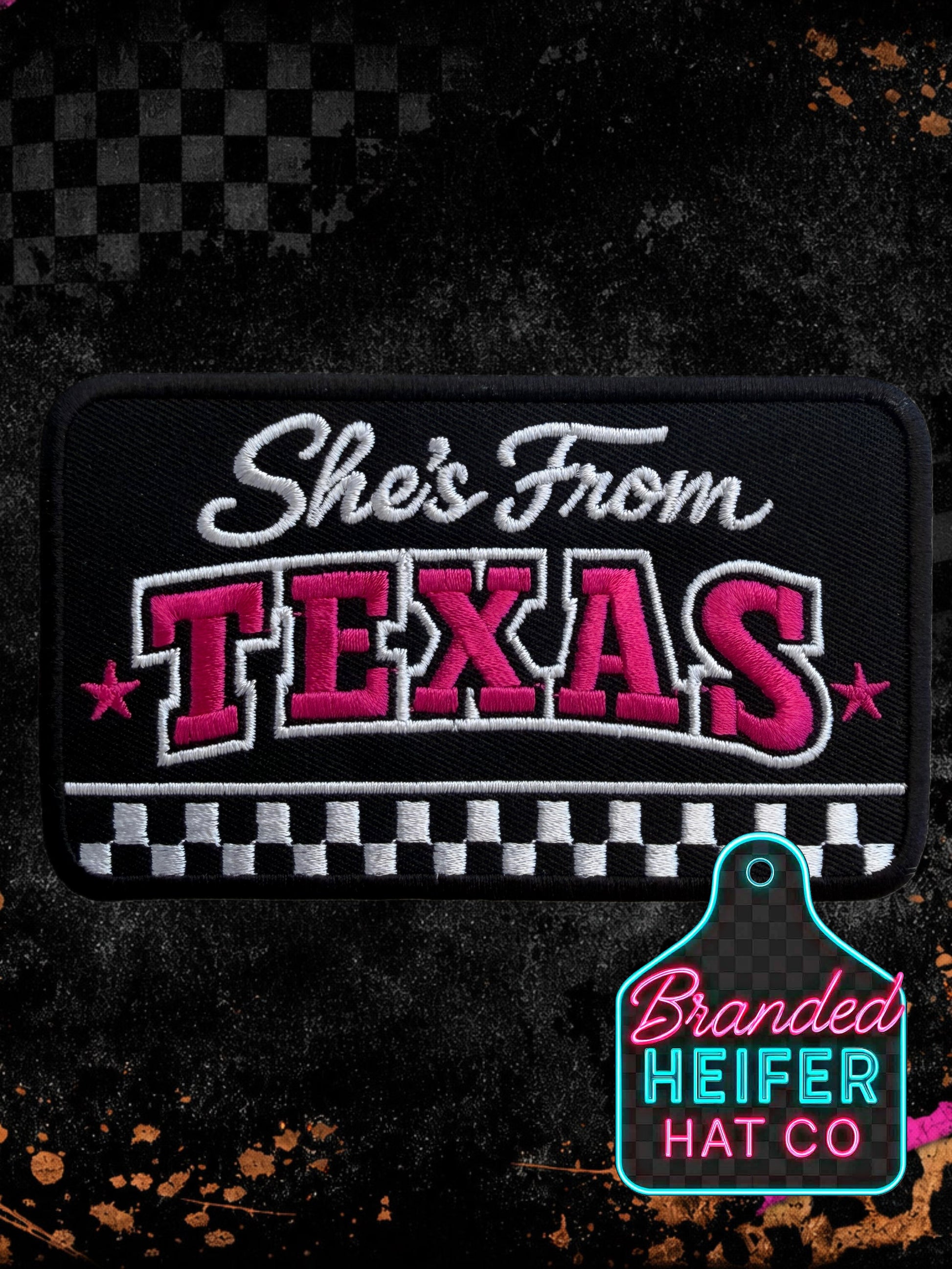 SHES FROM TEXAS NEON CHECKERED | EMBROIDERY PATCH